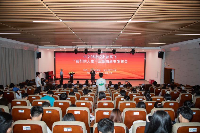 6月18日上午,長(zhǎng)沙理工大學(xué)95級(jí)校友、知名文學(xué)家和財(cái)經(jīng)作家曾高飛長(zhǎng)篇小說《前行的人生》三部曲新書發(fā)布會(huì)在長(zhǎng)沙理工大學(xué)云塘校區(qū)舉行。中央文史館館員、中國(guó)文學(xué)藝術(shù)界聯(lián)合會(huì)原副主席仲呈祥,作家出版社副總編輯顏慧,長(zhǎng)沙理工大學(xué)黨委委員、副校長(zhǎng)談傳生等出席發(fā)布會(huì)。發(fā)布會(huì)由長(zhǎng)沙理工大學(xué)文學(xué)與新聞學(xué)院教授、湖南省政府參事成松柳主持。