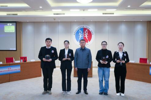(司法行政學(xué)院副院長(zhǎng)張俊為團(tuán)體二等獎(jiǎng)?lì)C發(fā)獎(jiǎng)杯)
