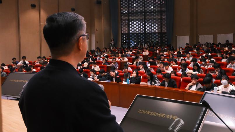 4月10日,一場(chǎng)關(guān)于語(yǔ)言藝術(shù)的精彩講座在北京化工大學(xué)昌平校區(qū)開講。國(guó)培源老師以《談青年人語(yǔ)言藝術(shù)之美》為題,為現(xiàn)場(chǎng)師生帶來了一場(chǎng)充滿智慧與幽默的表達(dá)盛宴。從“社恐”到“社牛”,從“不敢開口”到“侃侃而談”,北京廣播電視臺(tái)主持人、評(píng)論員、主任播音員國(guó)培源老師用幾個(gè)實(shí)用技巧,揭示了當(dāng)眾表達(dá)的核心奧秘——“語(yǔ)言是最厲害的武器”。