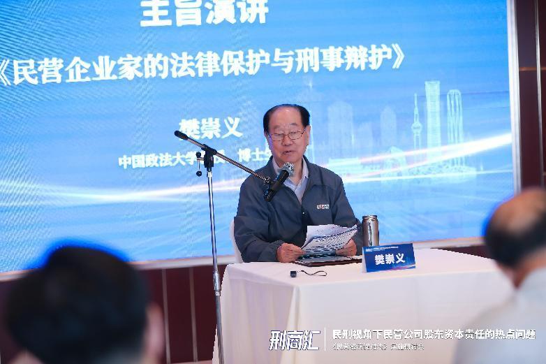 研討會(huì)大咖云集,從不同角度解讀關(guān)鍵議題。主旨演講環(huán)節(jié),刑訴法學(xué)泰斗、中國(guó)政法大學(xué)樊崇義教授以《民營(yíng)企業(yè)家的法律保護(hù)與刑事辯護(hù)》為題,解析民營(yíng)企業(yè)涉刑責(zé)任法律保護(hù)的五大原則,主張堅(jiān)持“謙抑、審慎、善意”理念慎用刑事手段解決經(jīng)濟(jì)糾紛。
