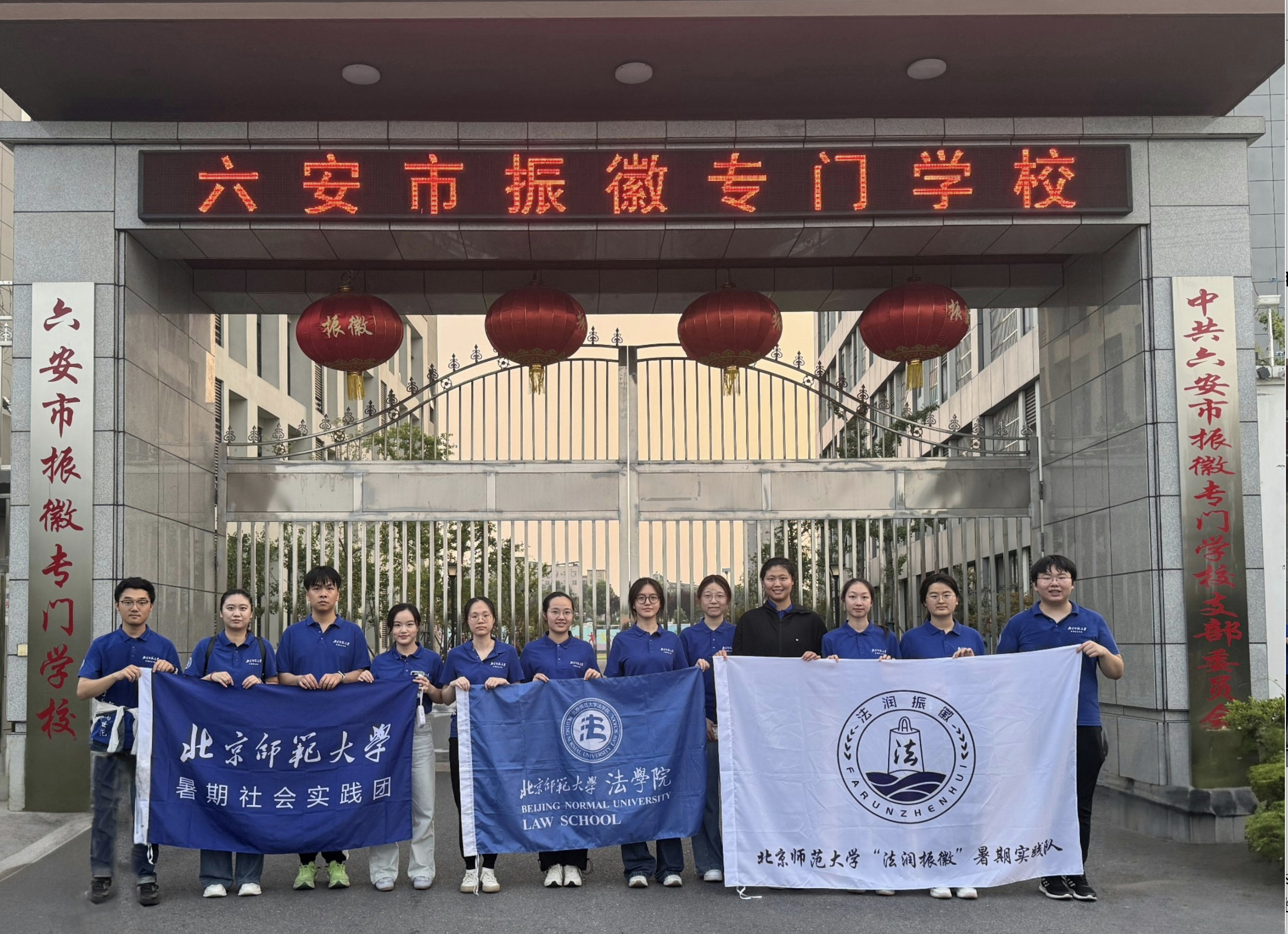 本次“法潤振徽”調研支教普法綜合實踐項目由共青團北京師范大學委員會主辦,北京師范大學法學院指導,并入選共青團中央維護青少年權益部“法治中國青春行”2025年暑期社會實踐活動。隊伍由十五名來自北京師范大學法學院、教育學部、心理學部、體育與運動學院、藝術與傳媒學院、外國語言文學學院等六個學部院系的本碩博學生共同組成。