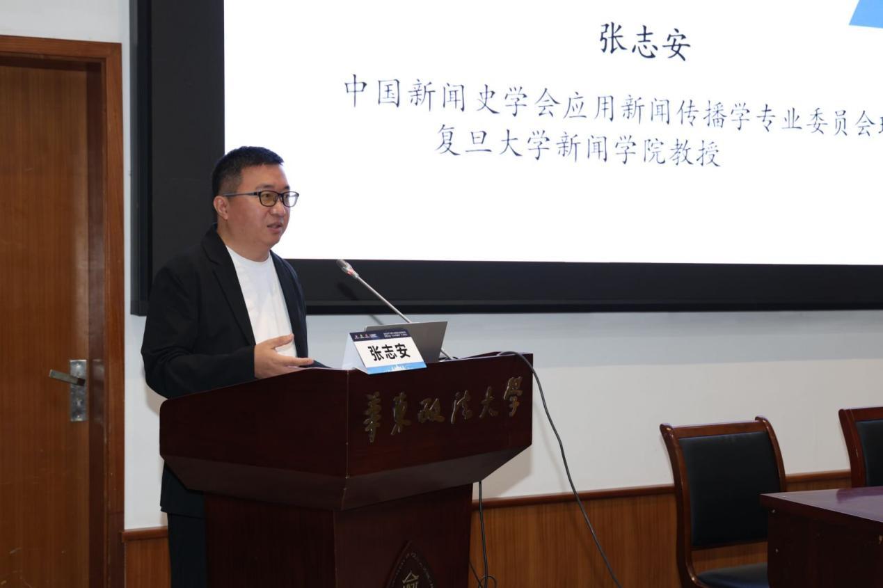 中國(guó)新聞史學(xué)會(huì)應(yīng)用新聞傳播學(xué)專業(yè)委員會(huì)理事長(zhǎng)、復(fù)旦大學(xué)新聞學(xué)院教授張志安對(duì)華政韜奮新聞傳播學(xué)院連續(xù)九年舉辦“東方傳播法”論壇表示祝賀并就媒體治理的發(fā)展分享了自己的思考。他提出隨著AIGC技術(shù)的快速發(fā)展,機(jī)器成為內(nèi)容生產(chǎn)主體,進(jìn)一步加劇了媒體治理的復(fù)雜性。媒體治理已逐漸從“行業(yè)治理”轉(zhuǎn)向“空間治理”,并進(jìn)一步邁向整體性、系統(tǒng)性的“生態(tài)治理”。