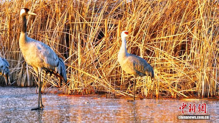 張余廣表示,此前衡水湖已有記錄的是丹頂鶴、白枕鶴、白頭鶴、白鶴、蓑羽鶴、灰鶴。沙丘鶴的罕見現(xiàn)身,有力印證當(dāng)?shù)貪竦厣鷳B(tài)環(huán)境的持續(xù)改善。目前,在衡水湖越冬的鶴類數(shù)量已超過2000只。