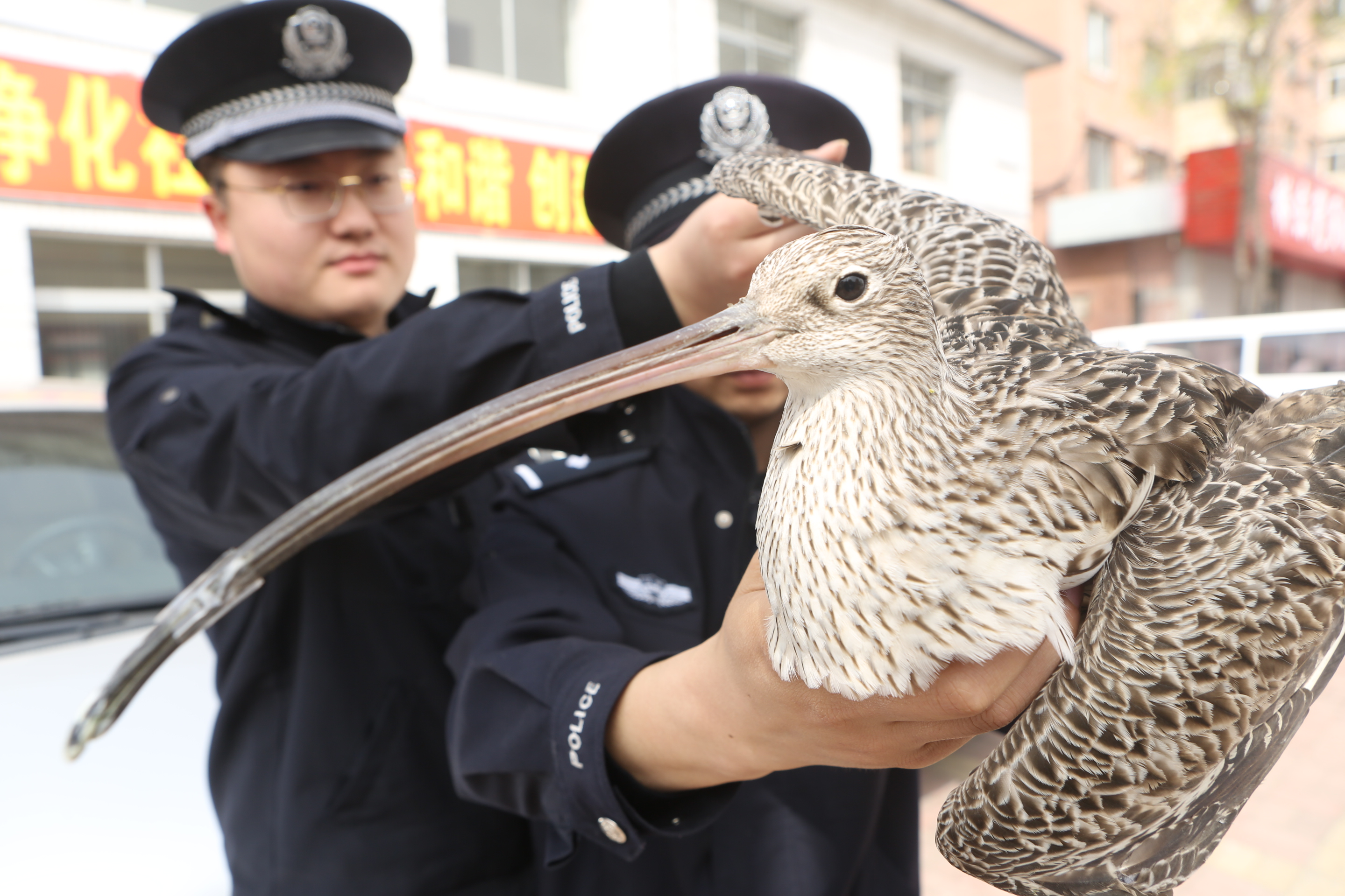 ?。丛拢玻踩?,遼寧省東港市公安局花園派出所接群眾報(bào)警,成功救助一只受傷的被全球列為瀕危物種、國(guó)家二級(jí)保護(hù)動(dòng)物——杓鷸,民警及時(shí)將杓鷸移交給當(dāng)?shù)匾吧鷦?dòng)植物保護(hù)中心進(jìn)行救治。 附著物通訊員 蔡冰 攝