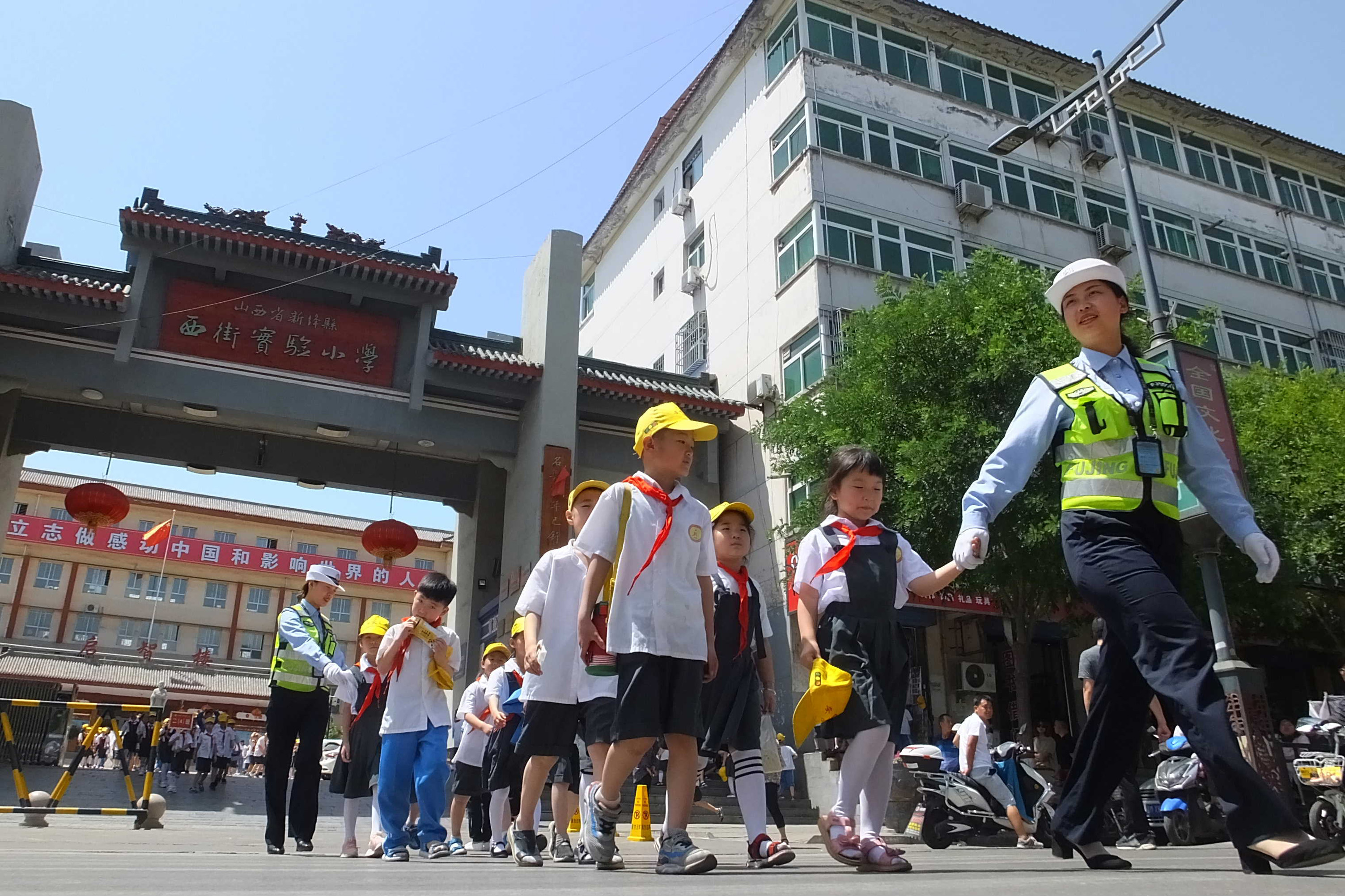 6月3日,山西運城市新絳縣公安交警大隊古城中隊的交警們在西街實驗小學大門前接力護送中午放學的小學生安全過馬路。 新絳縣作為山西省教育大縣,護送中小學生安全上下學已成為當地交警的一項日常工作。雖然幾十年中交警換了一茬又一茬,好多交警已退休,但“接力護航”的接力棒在一批批交警手中傳遞,確保了幾十年來無一起重特大中小學生交通事故發(fā)生。