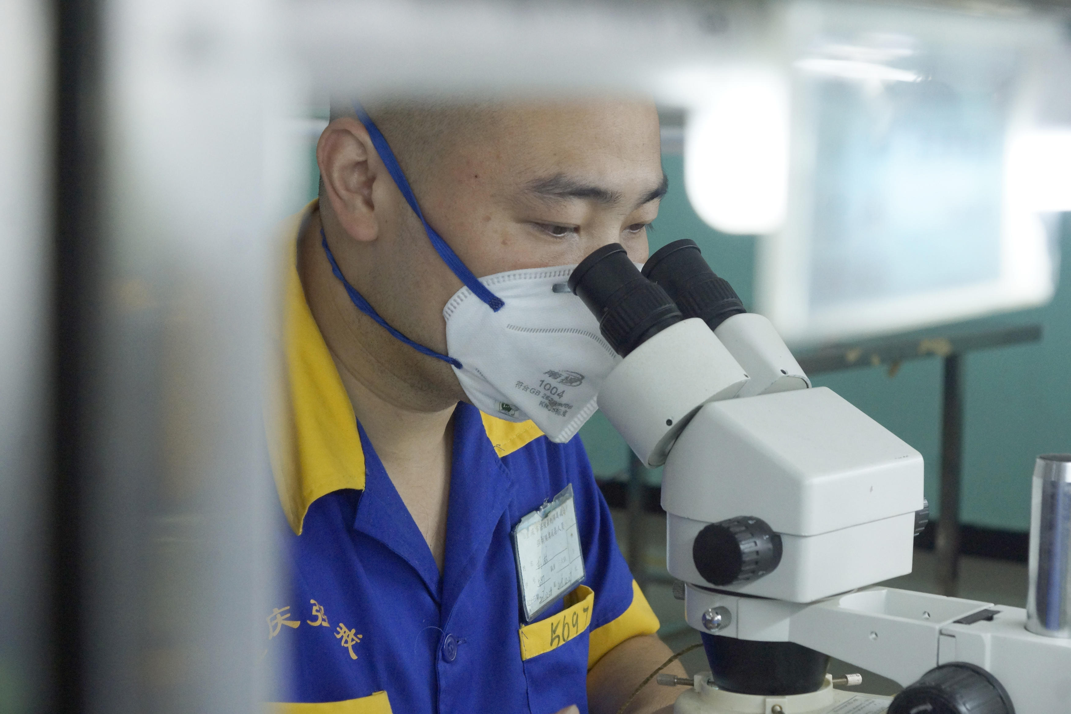 習(xí)藝生產(chǎn)車間,一名戒毒人員一絲不茍地參加康復(fù)勞動