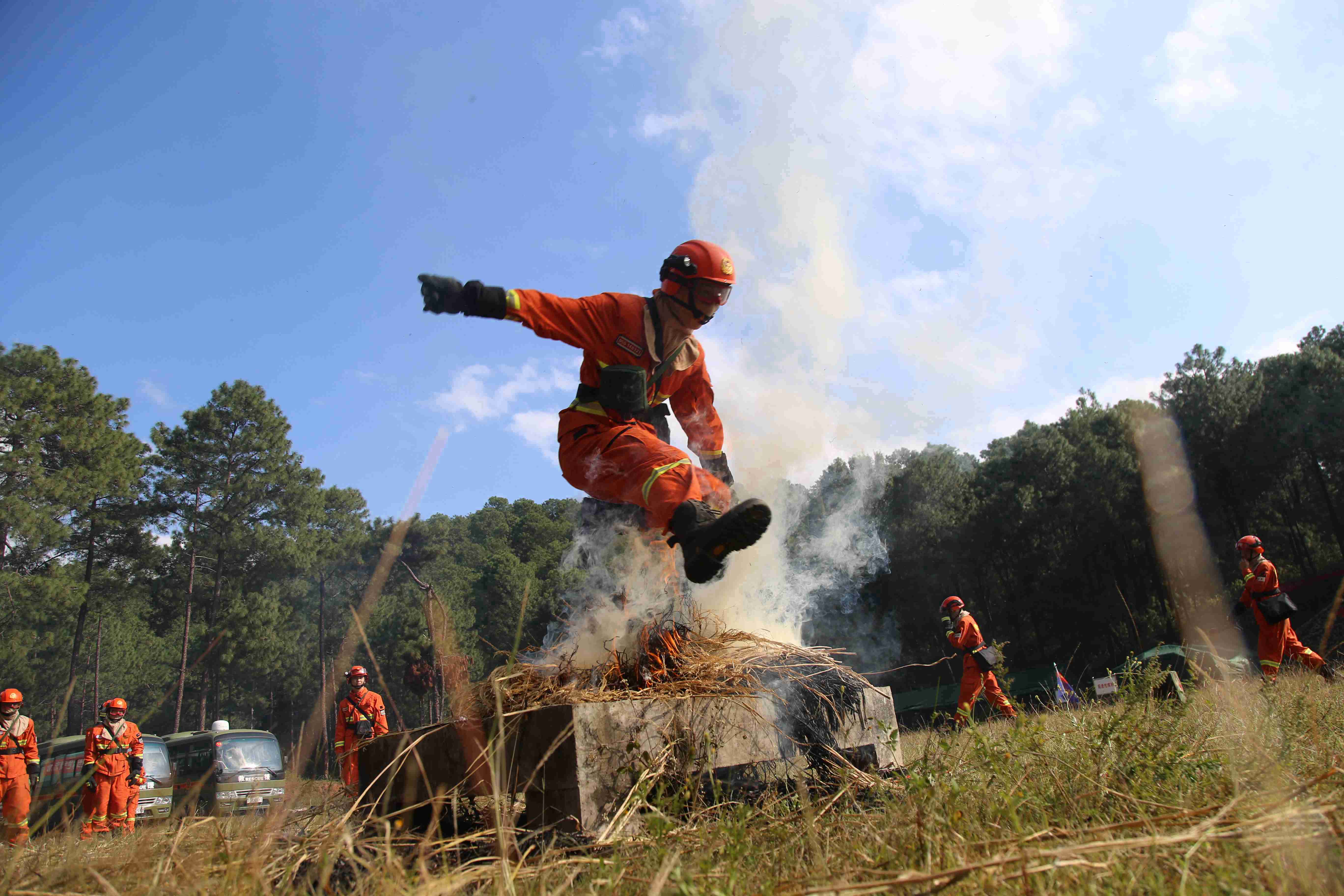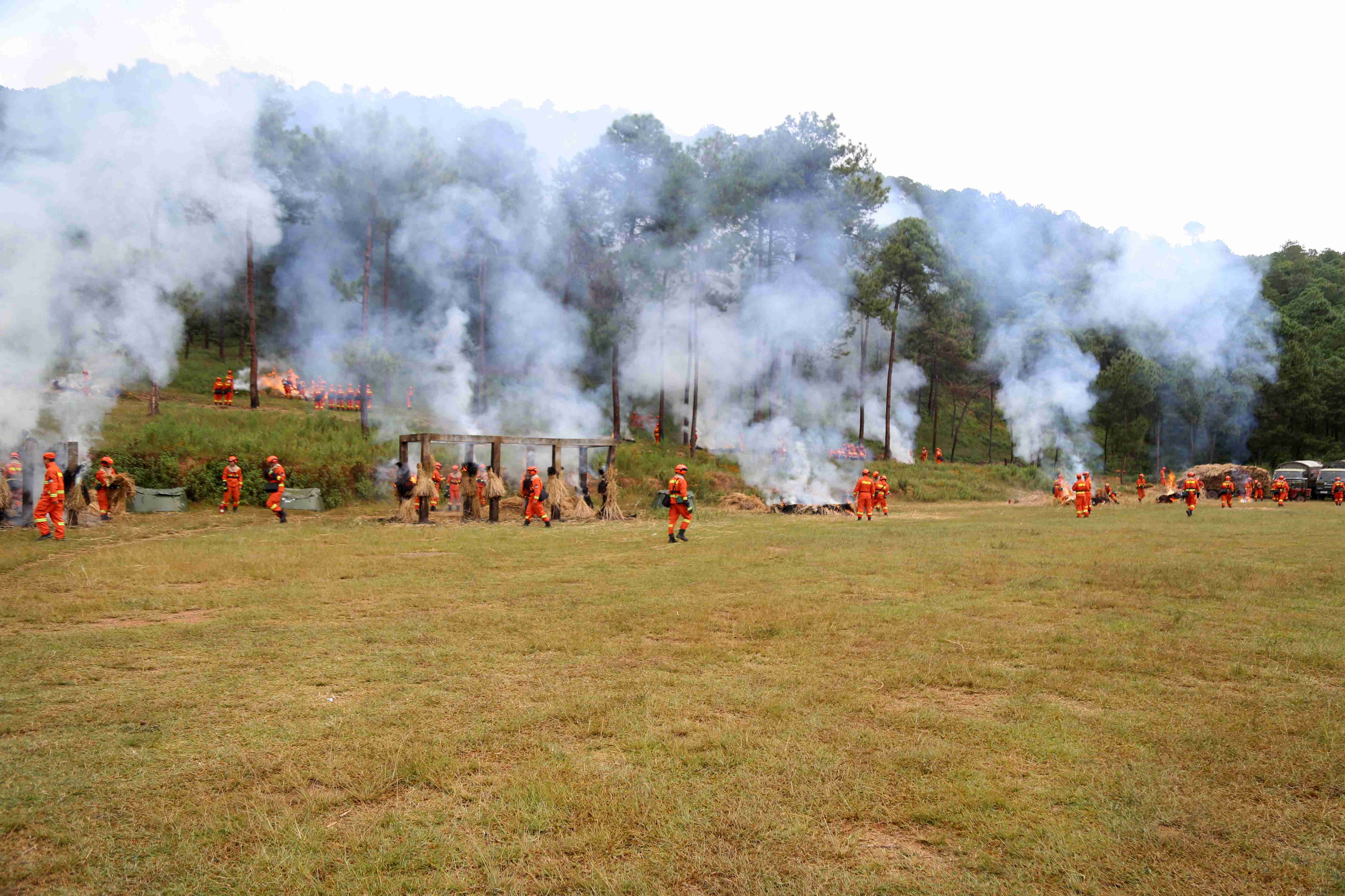 涼山森林消防支隊野外駐訓場上硝煙彌漫。