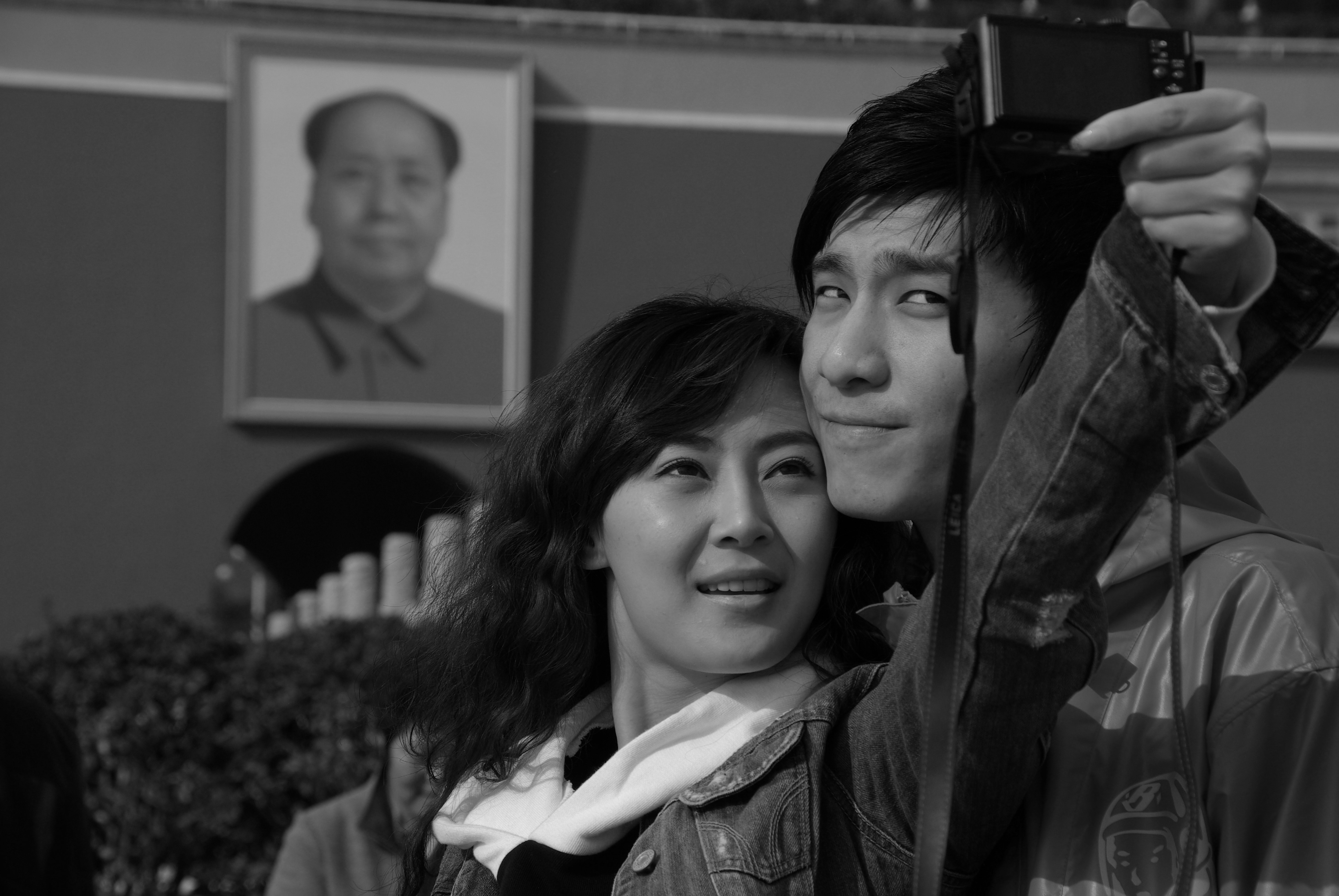 2009年3月23日,北京天安門前一對戀人在自拍。蔣鐸攝
