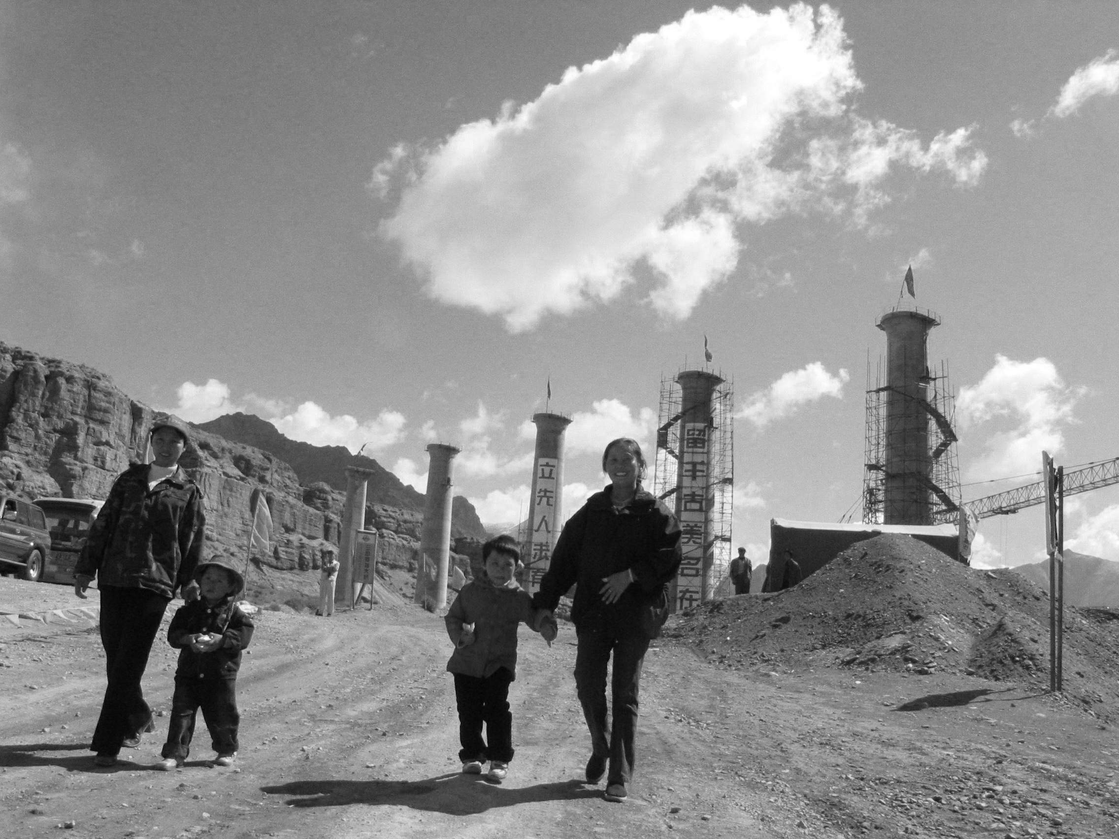 2003年7月,兩位山東女教師利用假期帶著孩子來到海拔4000米的青藏公路工地看望丈夫。蔣鐸攝