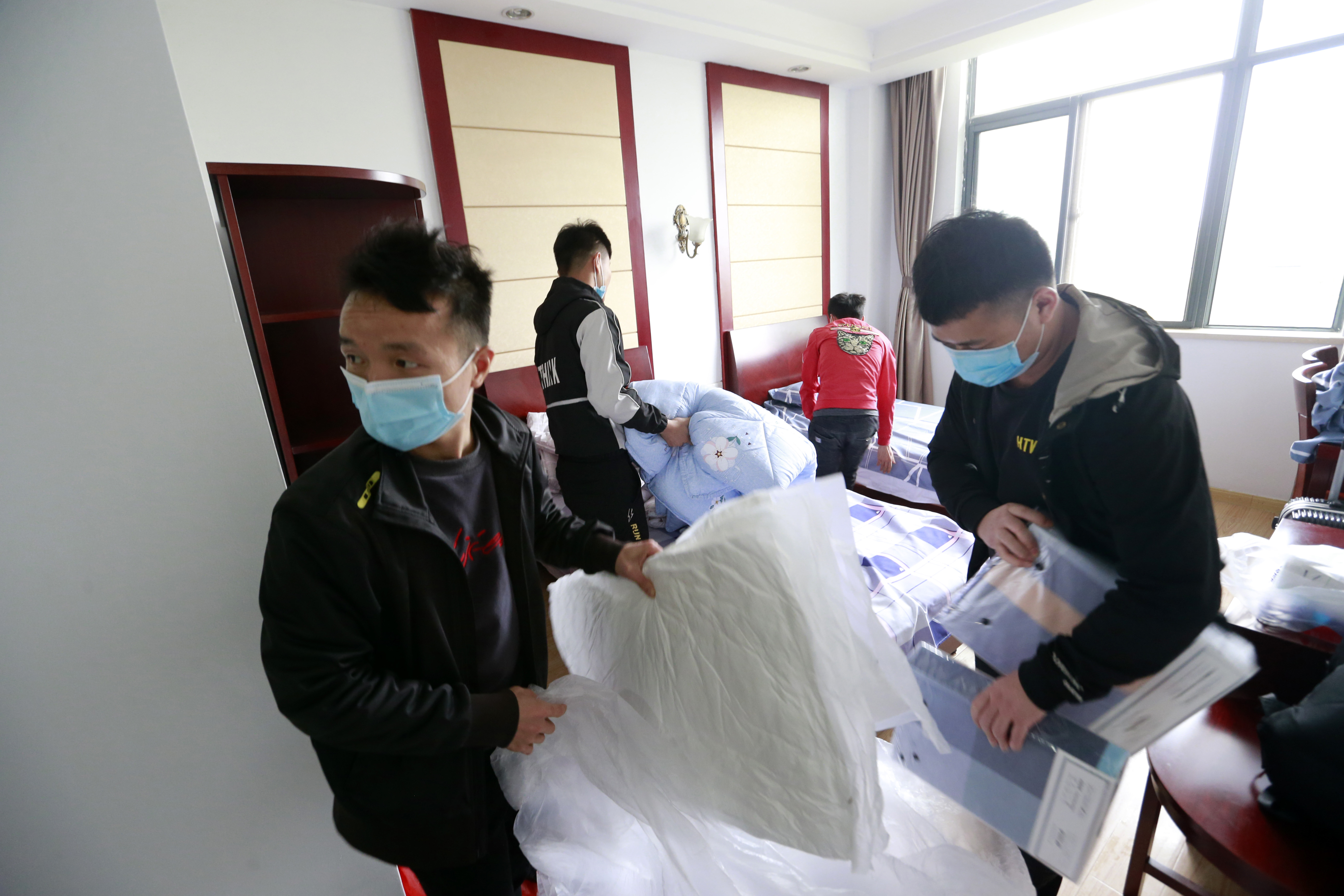 4月19日,來南京之前,南京港出入境邊防檢查站工作人員就叮囑楊校詢和小伙伴們只需帶上換洗衣物,其他的被褥和生活用品都買好了,他們?cè)诜块g整理新被褥。