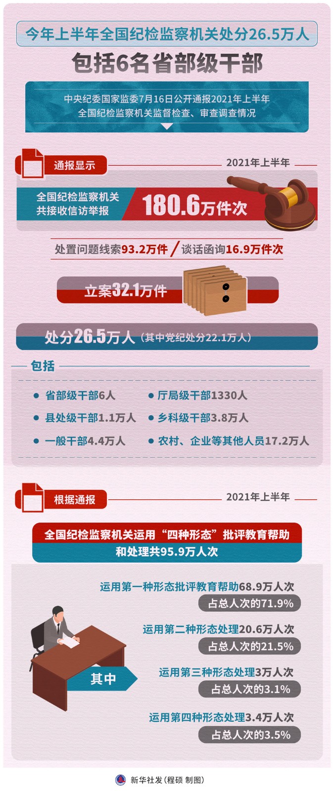 圖表:今年上半年全國(guó)紀(jì)檢監(jiān)察機(jī)關(guān)處分26.5萬人 包括6名省部級(jí)干部
