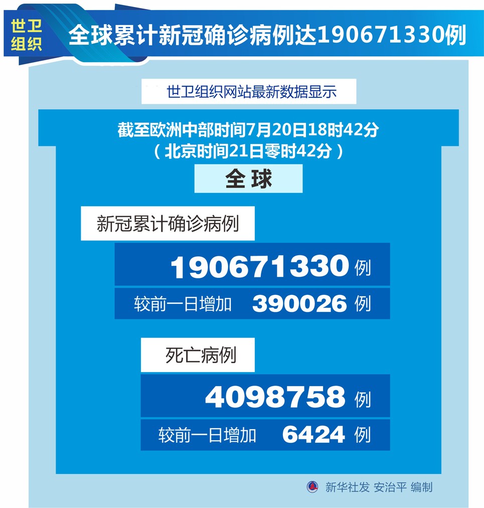 圖表:世衛(wèi)組織:全球累計新冠確診病例達190671330例