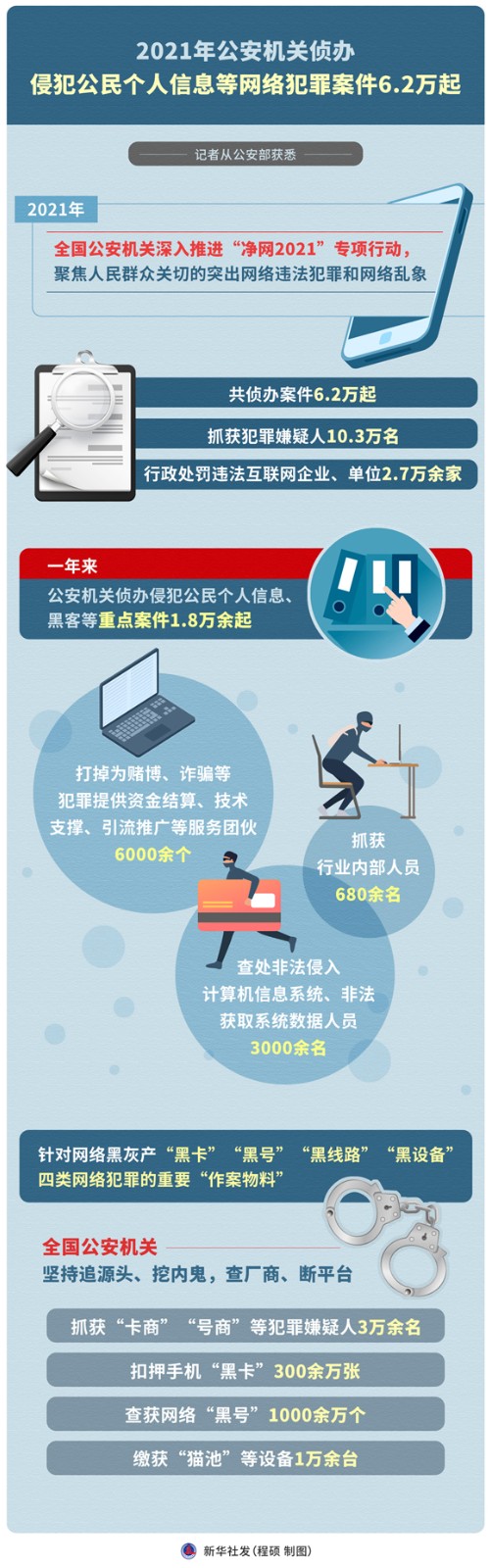 圖表:2021年公安機(jī)關(guān)偵辦侵犯公民個(gè)人信息等網(wǎng)絡(luò)犯罪案件6.2萬(wàn)起