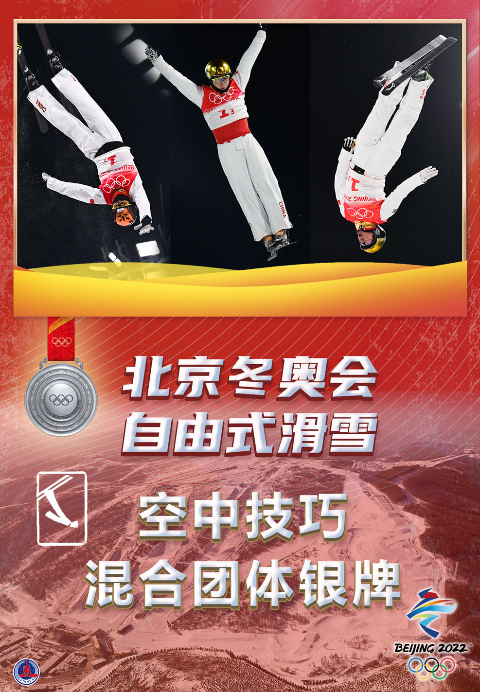海報:中國隊獲自由式滑雪空中技巧混合團體銀牌