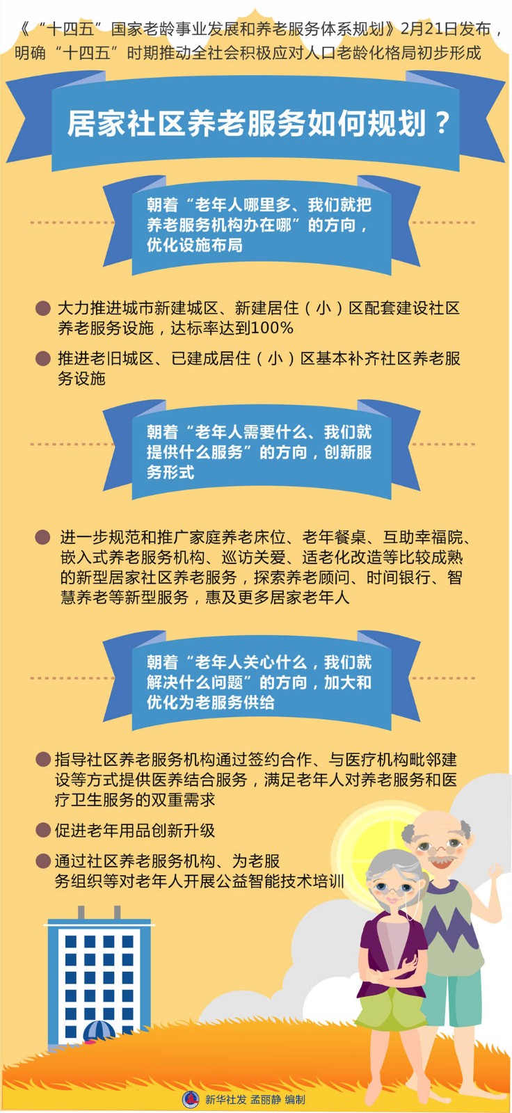 《“十四五”國(guó)家老齡事業(yè)發(fā)展和養(yǎng)老服務(wù)體系規(guī)劃》2月21日發(fā)布,明確“十四五”時(shí)期推動(dòng)全社會(huì)積極應(yīng)對(duì)人口老齡化格局初步形成。圍繞相關(guān)熱點(diǎn)問題,國(guó)家發(fā)展改革委、民政部、國(guó)家衛(wèi)生健康委、國(guó)家醫(yī)保局等部門有關(guān)負(fù)責(zé)同志回答了記者提問。將從三方面推動(dòng)居家和社區(qū)養(yǎng)老服務(wù)進(jìn)入高質(zhì)量發(fā)展“2.0”版本。