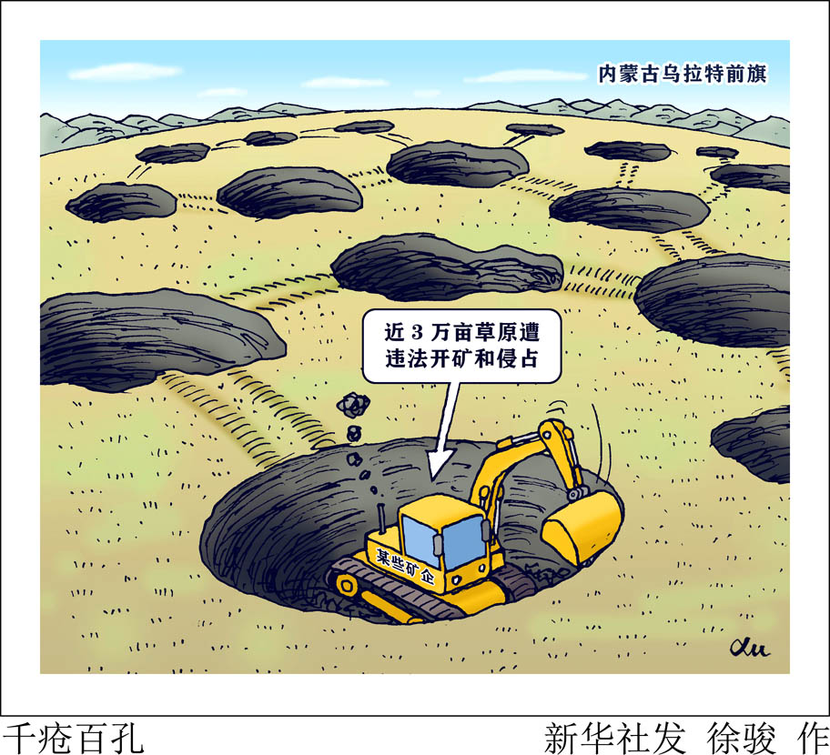 “新華視點(diǎn)”記者日前跟隨中央第三生態(tài)環(huán)境保護(hù)督察組督察發(fā)現(xiàn),內(nèi)蒙古自治區(qū)巴彥淖爾市烏拉特前旗礦山開采長(zhǎng)期無序發(fā)展,近3萬畝草原遭違法開礦和侵占,使原本生態(tài)就脆弱的荒漠半荒漠草原遭受嚴(yán)重破壞。