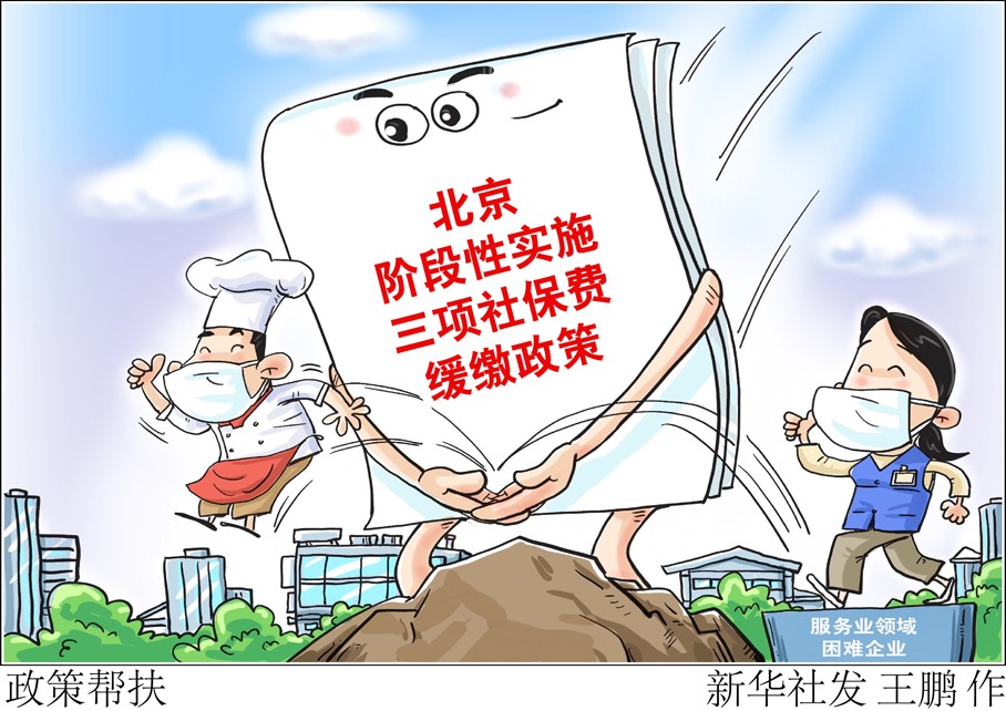 為幫助服務(wù)業(yè)領(lǐng)域困難企業(yè)渡過(guò)難關(guān)、恢復(fù)發(fā)展,北京市人力資源和社會(huì)保障局與國(guó)家稅務(wù)總局北京市稅務(wù)局、北京市財(cái)政局等九部門(mén)5月9日聯(lián)合發(fā)布通告,對(duì)在北京市參保繳費(fèi),屬于餐飲、零售、旅游、民航、公路鐵路運(yùn)輸行業(yè)的企業(yè),階段性實(shí)施企業(yè)職工基本養(yǎng)老保險(xiǎn)、失業(yè)保險(xiǎn)、工傷保險(xiǎn)三項(xiàng)社保費(fèi)緩繳政策。