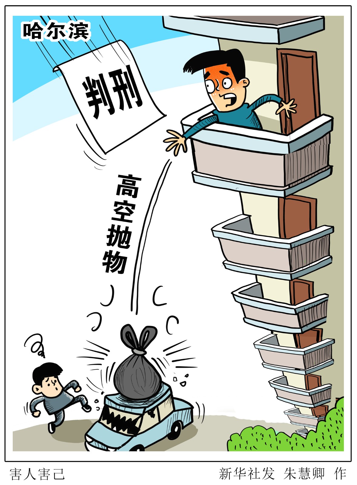 從高層建筑物向下拋擲物品,不僅是民事違法行為,還可能構(gòu)成刑事犯罪。5月20日,哈爾濱市道外區(qū)人民法院公開宣判一起高空拋物罪案件,被告人于某某犯高空拋物罪,被判處有期徒刑六個月,緩刑一年。
