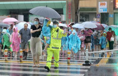 6月27日傍晚,湖北省荊門市公安局交警支隊(duì)民警在雨中,護(hù)送學(xué)生安全過馬路。當(dāng)天,荊門市發(fā)布暴雨橙色預(yù)警,荊門市公安局交警支隊(duì)民輔警提前到達(dá)各個(gè)護(hù)學(xué)崗點(diǎn),在雨中積極疏導(dǎo)交通,護(hù)送學(xué)生安全過馬路,確保學(xué)校門前及周邊道路交通安全暢通。