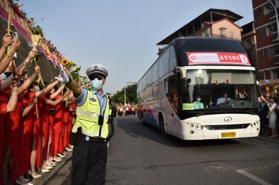 6月7日,2022年度全國高考正式拉開帷幕。為確保高考安全順利進(jìn)行,遼寧省燈塔市公安局成立高考安保服務(wù)工作領(lǐng)導(dǎo)小組,為廣大考生提供優(yōu)質(zhì)高效的警務(wù)服務(wù),全力保障高考的順利進(jìn)行。圖為考生對民警的傾力守護(hù)表達(dá)感謝。