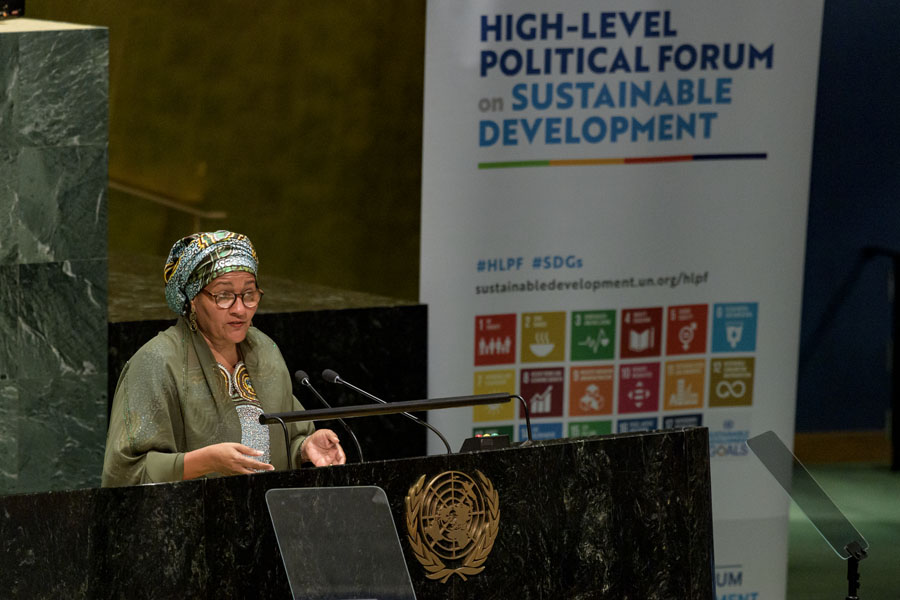 7月5日,在位于紐約的聯(lián)合國(guó)總部,聯(lián)合國(guó)常務(wù)副秘書(shū)長(zhǎng)阿明娜·穆罕默德在聯(lián)合國(guó)可持續(xù)發(fā)展高級(jí)別政治論壇上發(fā)言。