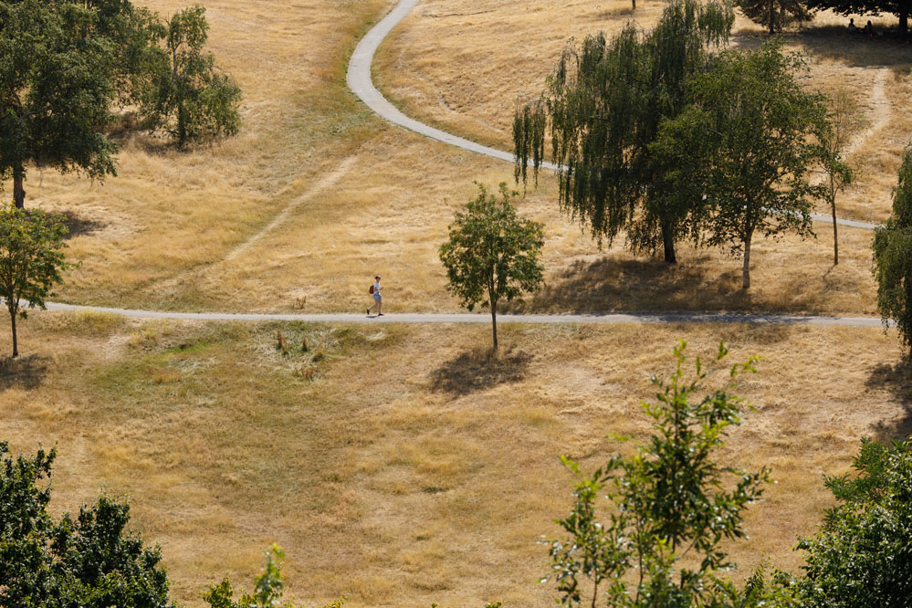 7月18日,一名女子在英國倫敦格林尼治公園內(nèi)行走。