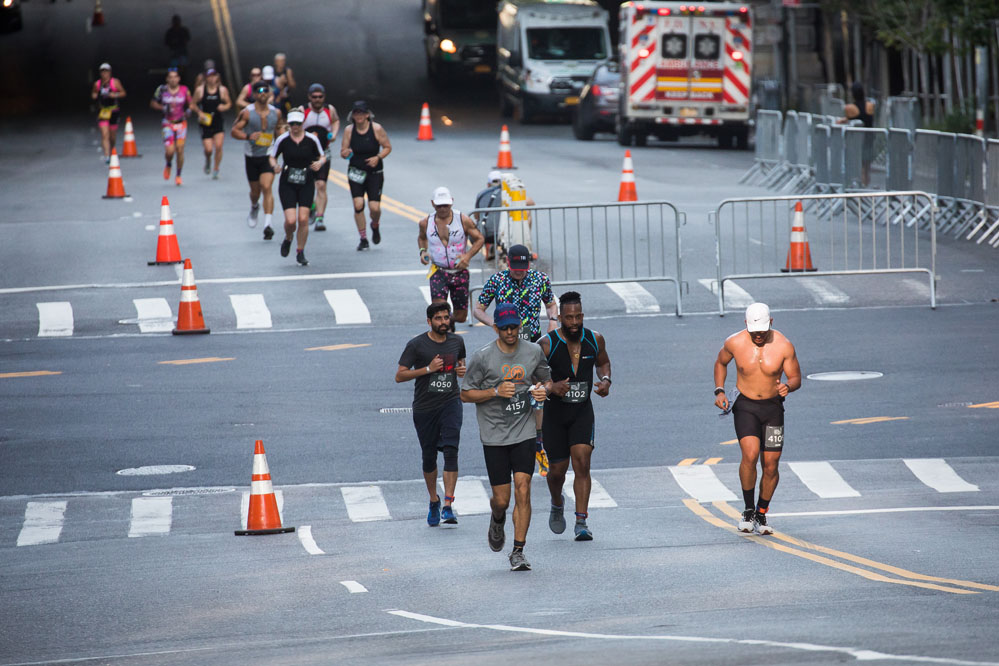 7月24日,人們?cè)诿绹?guó)紐約參加鐵人三項(xiàng)比賽,當(dāng)日的比賽賽程因高溫縮短。