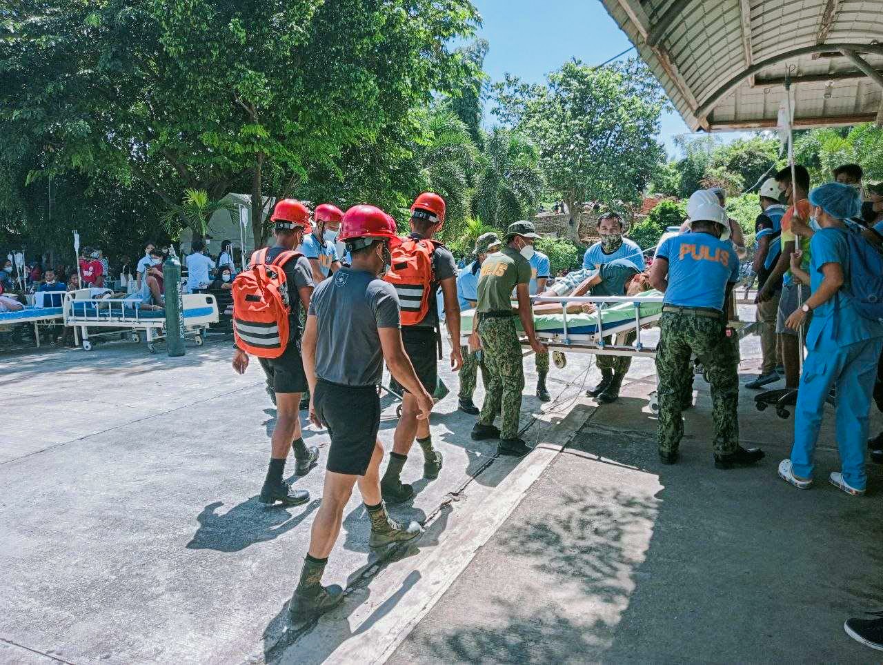 7月27日,救援人員在菲律賓阿布拉省運送傷者。