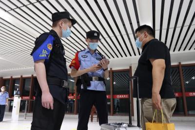 圖為7月20日,民警在出站口開展查緝工作。