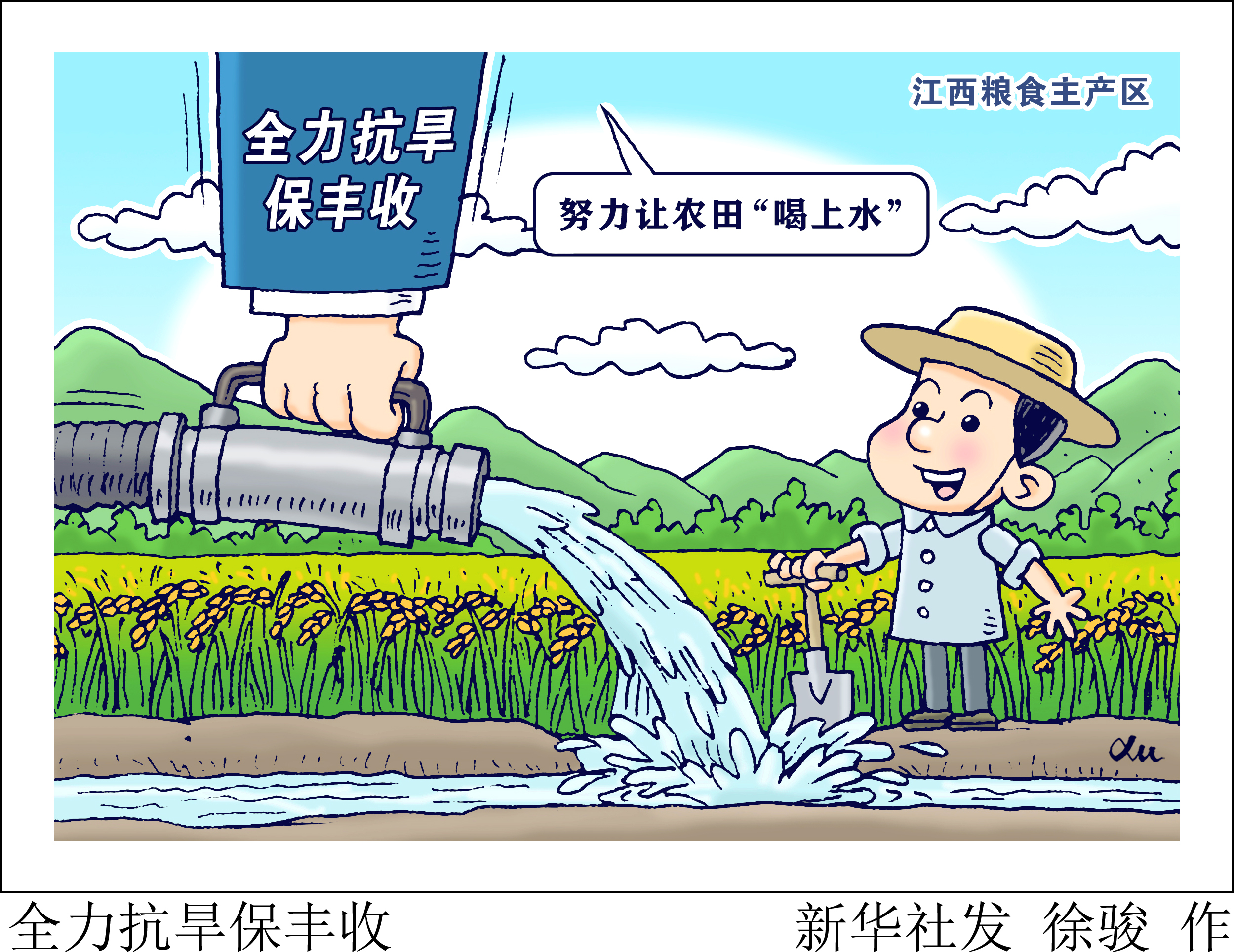 7月下旬以來,南方多地出現(xiàn)高溫少雨天氣,旱期疊加高溫?zé)岷?,?duì)秋糧生產(chǎn)造成威脅。江西是我國(guó)糧食主產(chǎn)區(qū)之一,當(dāng)?shù)馗刹咳罕娡ㄟ^打井、清溝、引水、提灌等方式,讓農(nóng)田“喝上水”,想方設(shè)法抗旱保秋糧豐收。