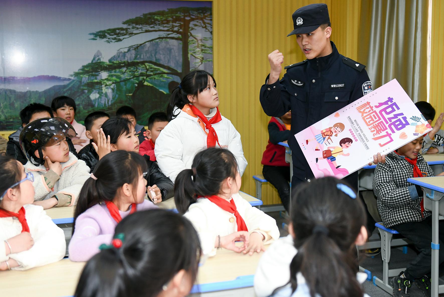 3月27日,安徽省馬鞍山市和縣公安局石楊派出所民警在石楊鎮(zhèn)中心小學(xué)開展“拒絕校園暴力”法治講座。