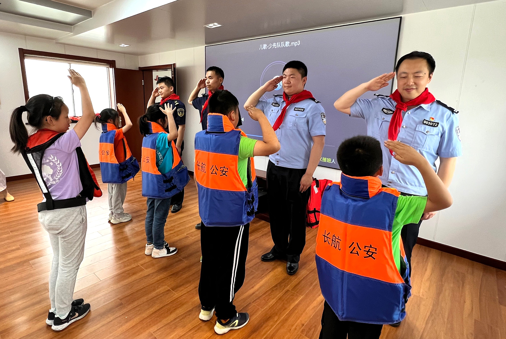 5月26日,長江航運公安局常州派出所聯合常州海事局開展“長江大保護,大手拉小手”——迎“六一”警營開放日主題活動。