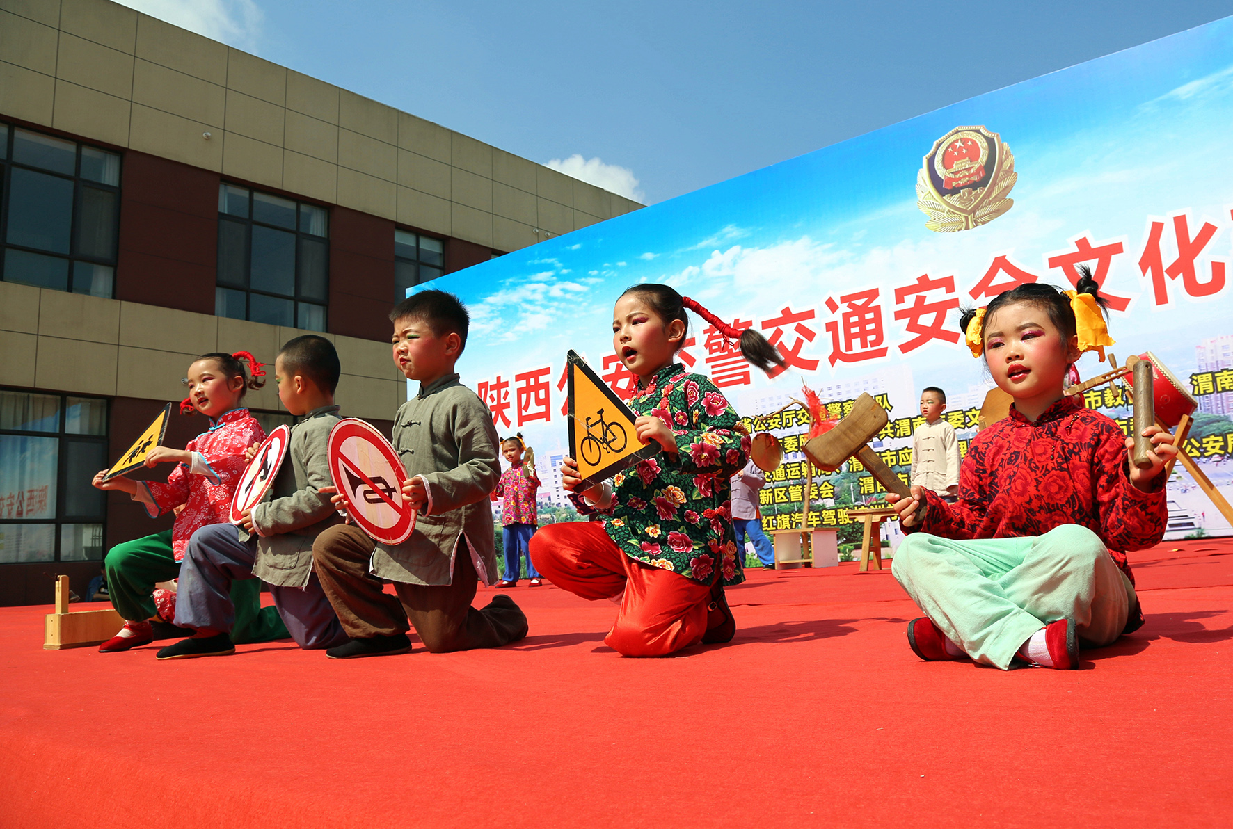 圖為非遺文化黃河老腔娃娃說交通安全。
