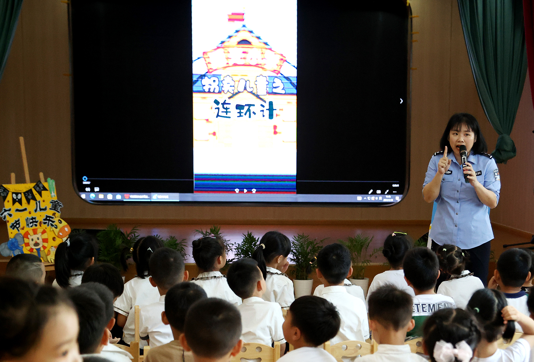 5月30日,安徽省涇縣公安局民警走進(jìn)涇川幼兒園開展“兒童安全校園行”活動。