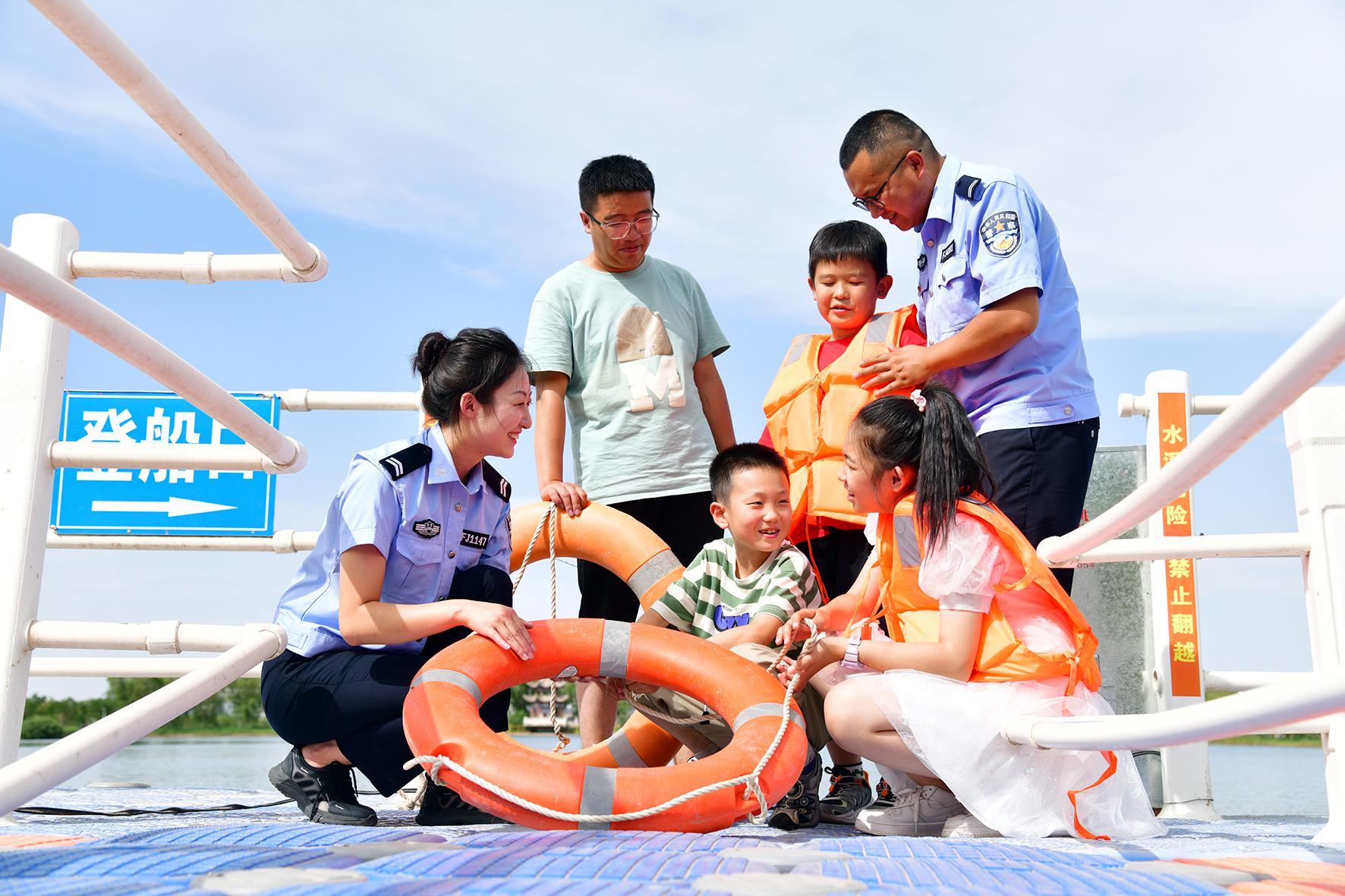 7月25日晚,長江航運公安局南通分局民警來到長江南通開發(fā)區(qū)段江堤處,通過防溺水知識問答、救援設(shè)施演示、發(fā)放宣傳手冊等形式,促進提高游客們的安全意識和防范能力。