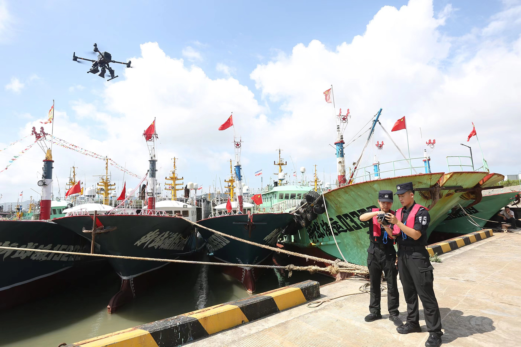為積極應(yīng)對(duì)今年第6號(hào)臺(tái)風(fēng)“卡努”可能帶來的影響,7月31日,浙江省岱山縣公安局民警利用警用無人機(jī)對(duì)岱山縣域漁港進(jìn)行空中巡查,加強(qiáng)漁港碼頭治安管控力度,對(duì)各類避風(fēng)船只開展安全提示。