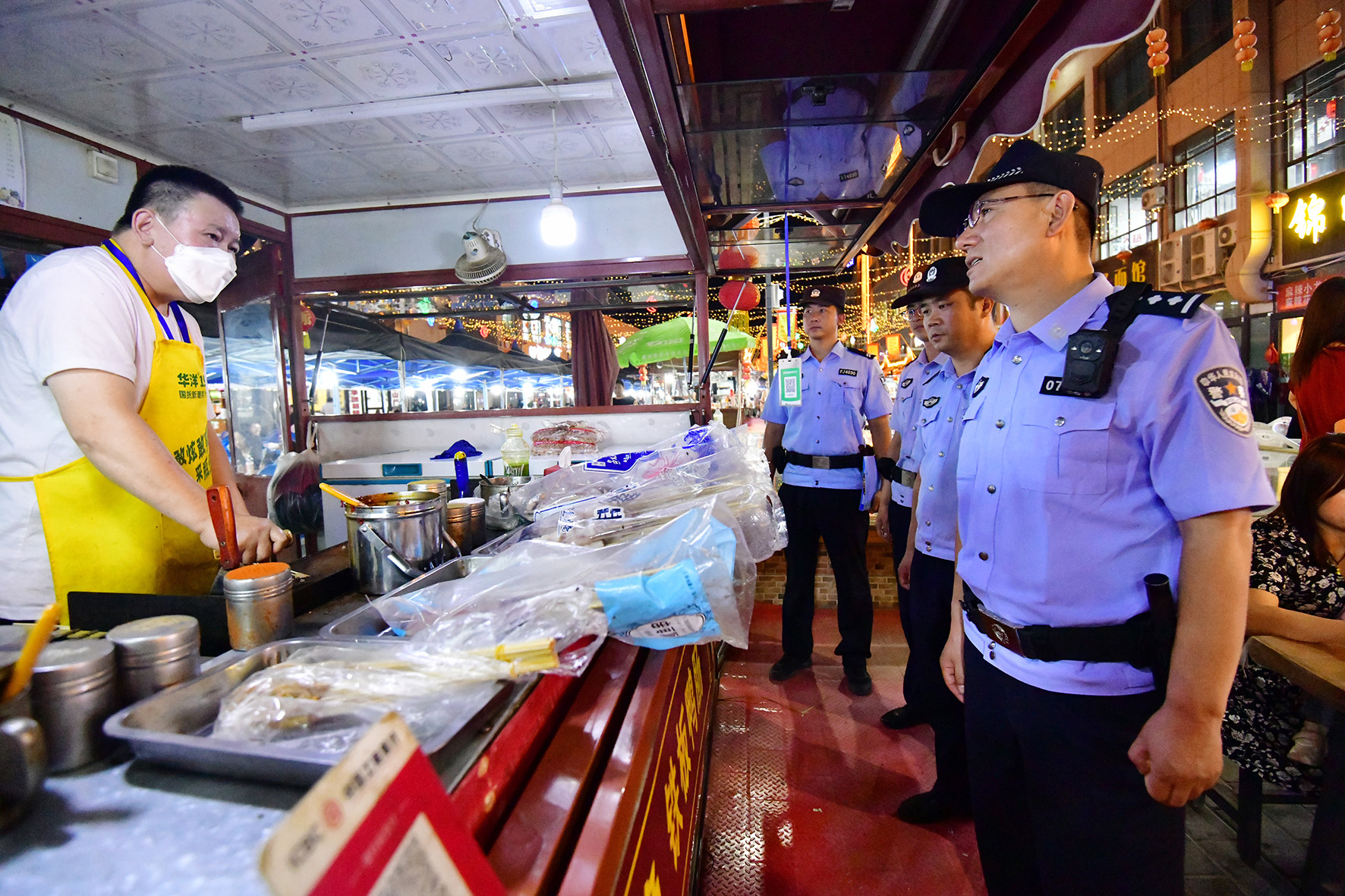 8月11日,山東省濟(jì)南市公安局市中區(qū)分局民警深入轄區(qū)商業(yè)街區(qū)、娛樂場所、燒烤攤點和城中村等重點區(qū)域,開展巡邏防控、治安清查、普法宣傳,著力整治突出治安問題。