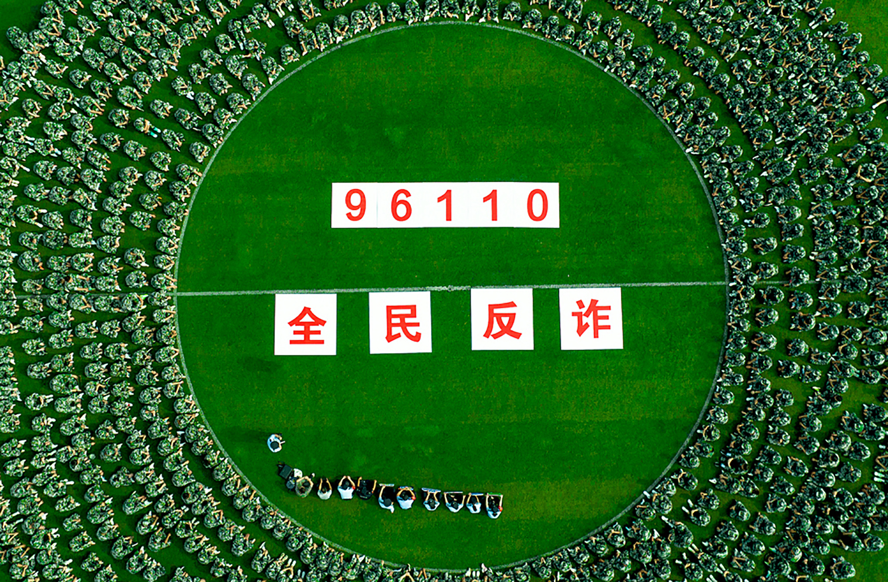 8月18日,在安徽省馬鞍山市和縣第一中學(xué),和縣公安局民警向1000多名參加軍訓(xùn)的高一新生開展“反詐”宣講。