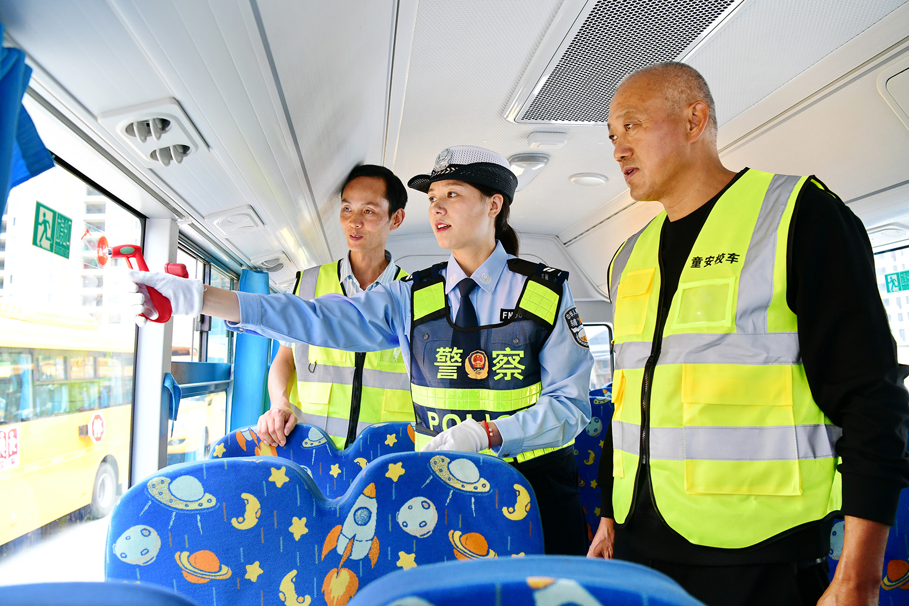 8月29日,江蘇省寶應(yīng)縣公安局交警大隊組織對轄區(qū)學(xué)校開展校車專項安全檢查。