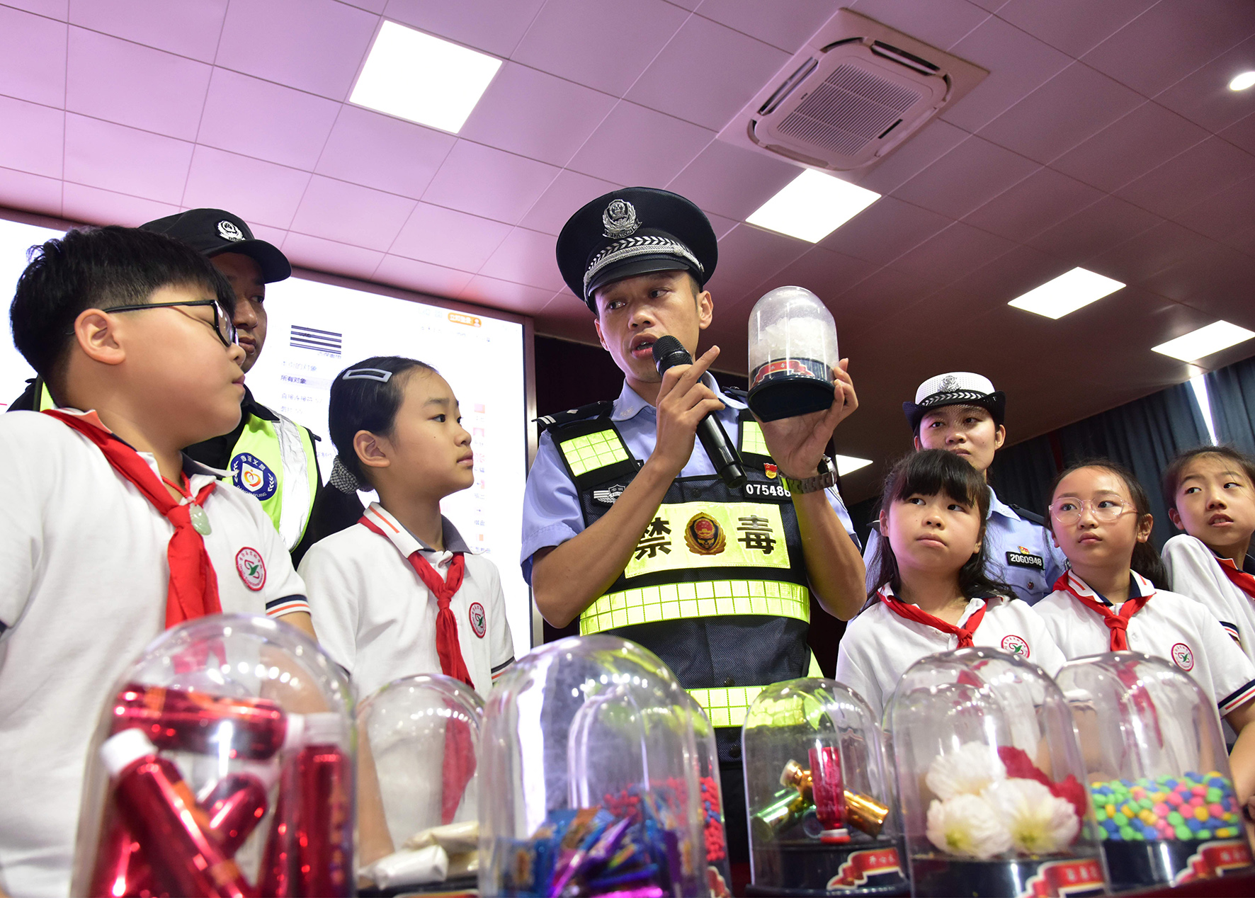 9月1日,安徽省當(dāng)涂縣公安局禁毒部門聯(lián)合交管大隊(duì)民警走進(jìn)實(shí)驗(yàn)小學(xué),為同學(xué)們講解道路交通安全、禁毒等知識(shí)。