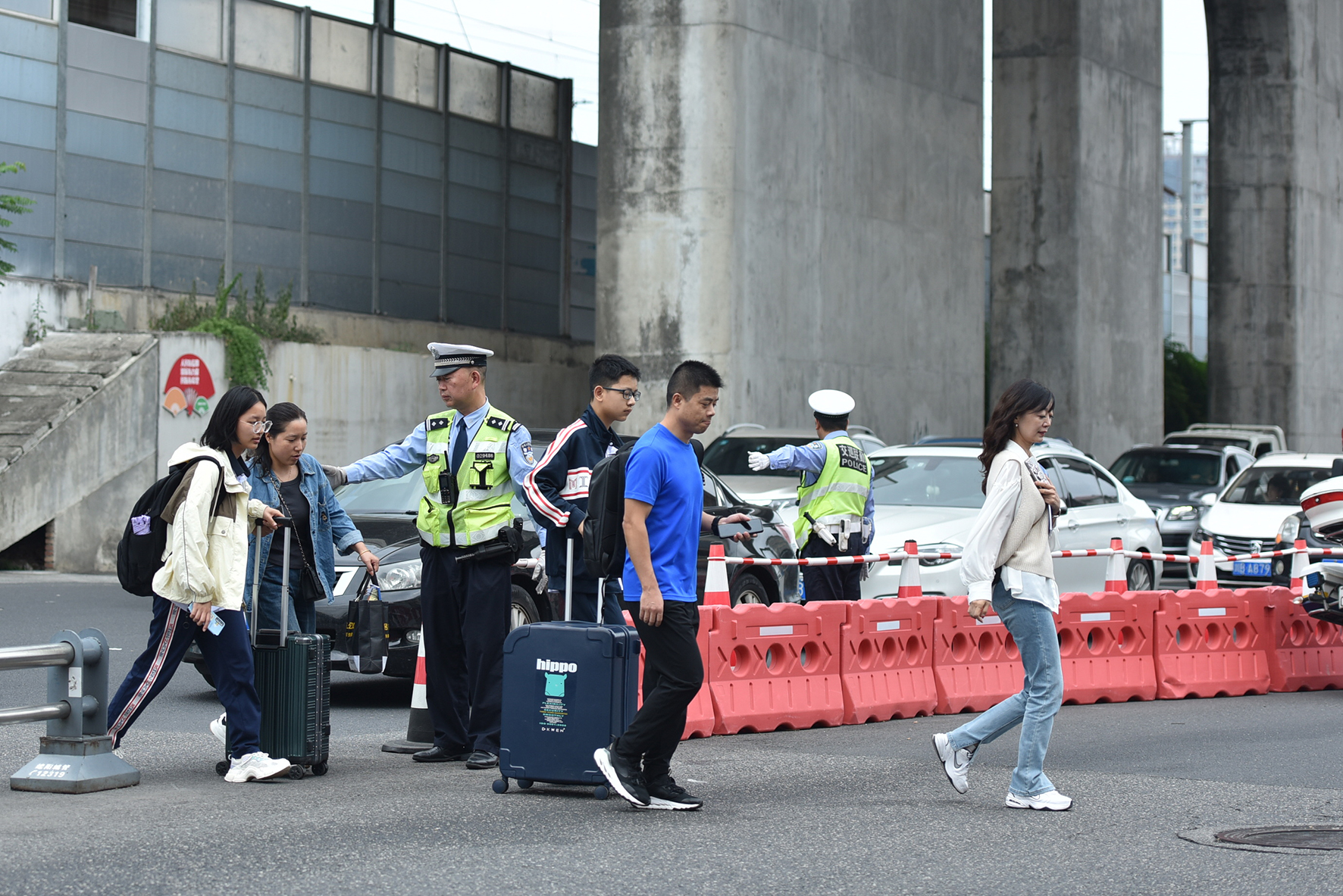 圖為9月28日,民警在學(xué)校附近指揮疏導(dǎo)車輛和行人。