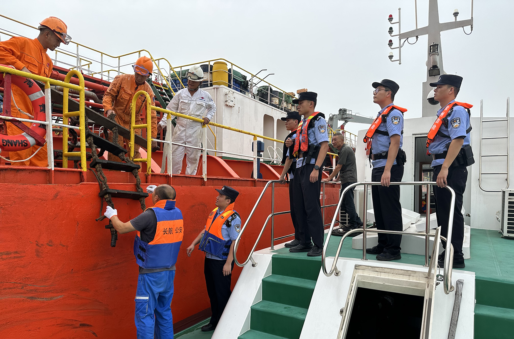 9月27日,長(zhǎng)江航運(yùn)公安局常州派出所聯(lián)合常州市出入境邊防檢查站在常州危化品錨地水域開展雙節(jié)期間“入浙”船舶治安消防安全檢查。