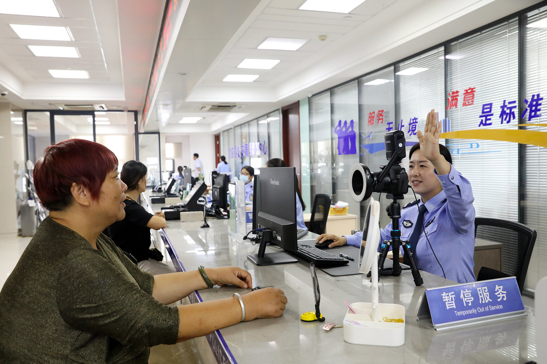 圖為9月27日,民警在給群眾采集照片辦理護(hù)照。