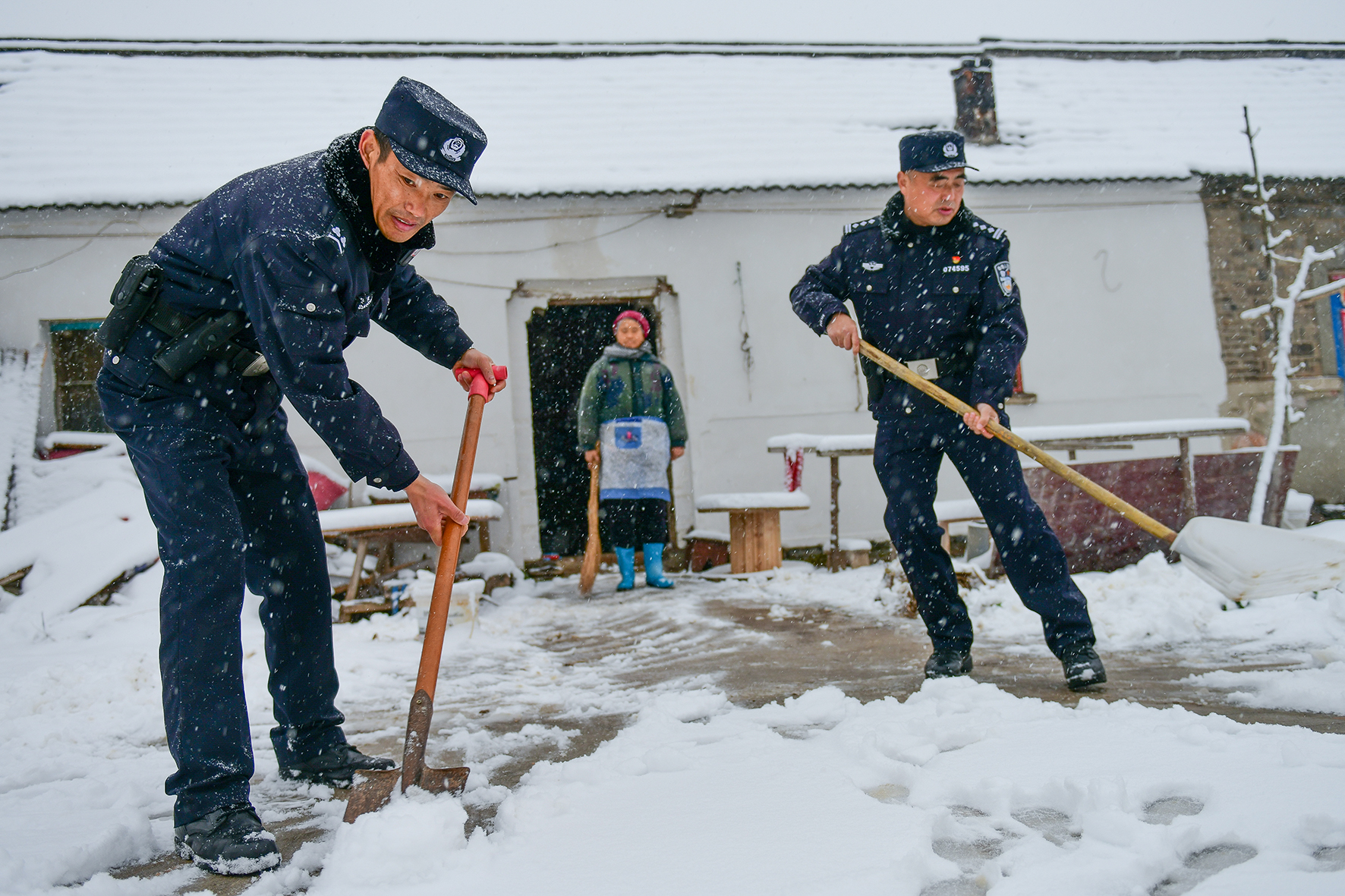 12月18日,安徽省馬鞍山市和縣公安局西埠派出所民警正在轄區(qū)小潘村給孤寡老人鏟雪。