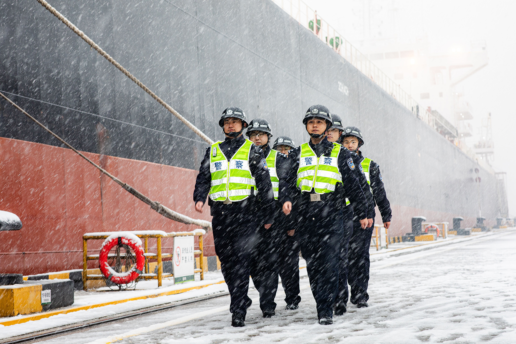 12月18日,南京港出入境邊防檢查站執(zhí)勤一隊民警聞“雪”而動,迅速啟動惡劣天氣應(yīng)急預(yù)案,24小時不間斷加強對港口執(zhí)勤區(qū)域、錨地等重點部位和場所的巡查力度,全力保障口岸通關(guān)順暢。