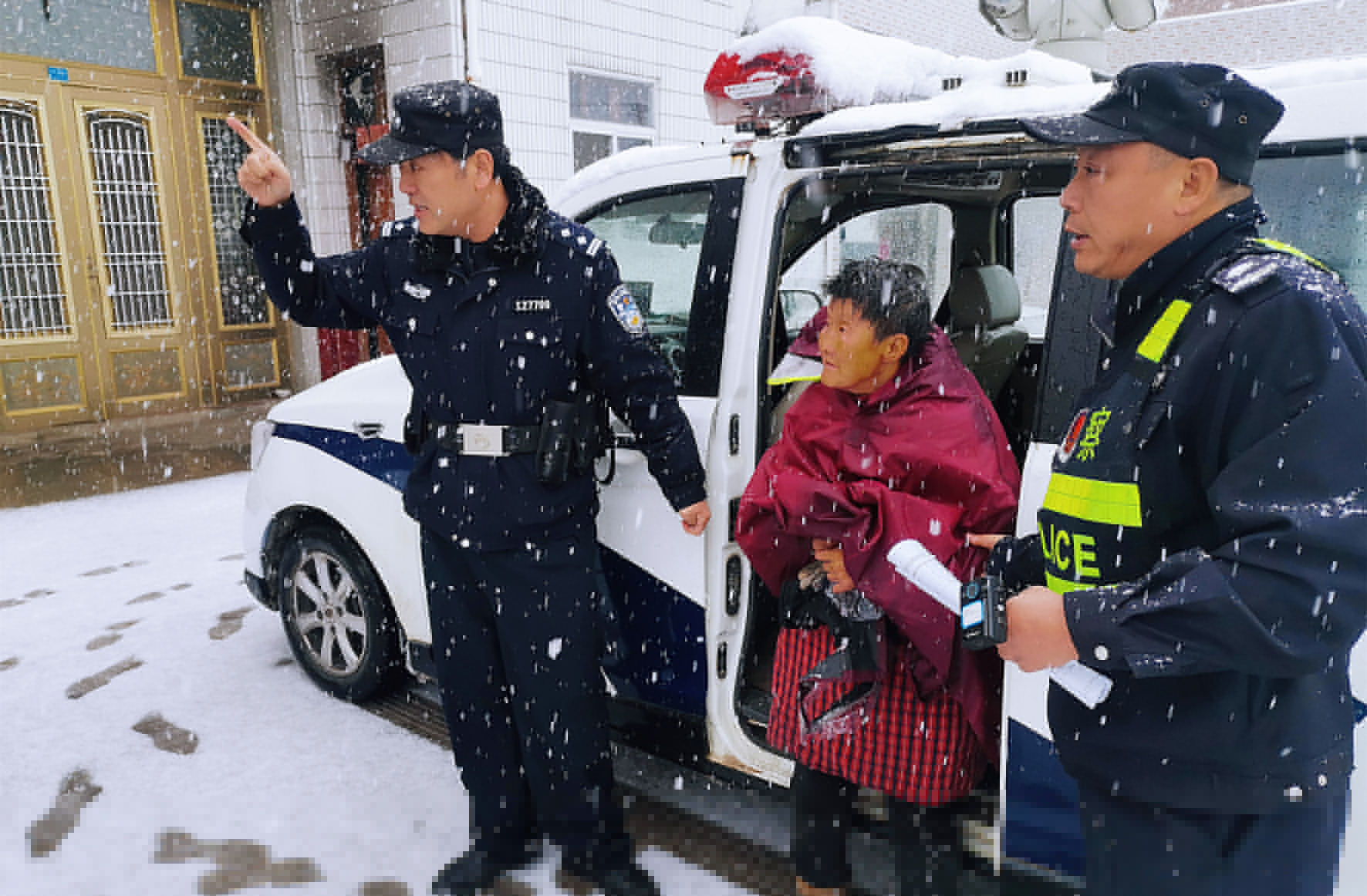 12月18日下午2時許,江蘇省泰興市公安局虹橋派出所接到群眾報警,稱一老人在風(fēng)雪中迷路。趕赴現(xiàn)場的民輔警經(jīng)過多方尋找與其家人取得聯(lián)系,并驅(qū)車將老人安全送回家。