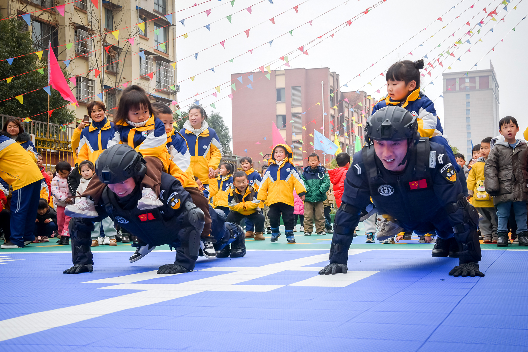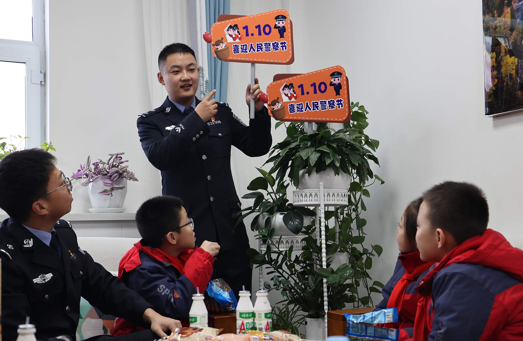 1月8日,安徽省涇縣公安局組織民警到轄區(qū)幼兒園開展“童心向警”慶祝第四個中國人民警察節(jié)活動。