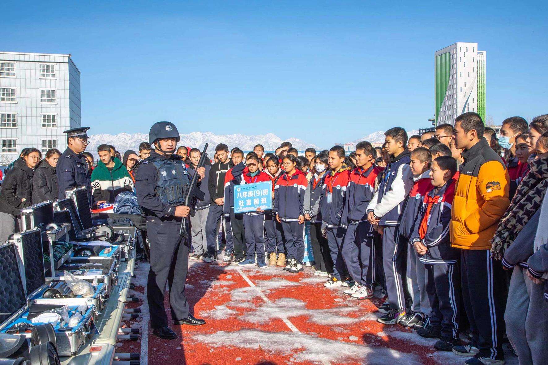 1月5日,新疆伊犁邊境管理支隊(duì)霍爾果斯口岸邊境派出所組織民警來到霍爾果斯國門初級中學(xué),開展“警營開放進(jìn)校園”活動。