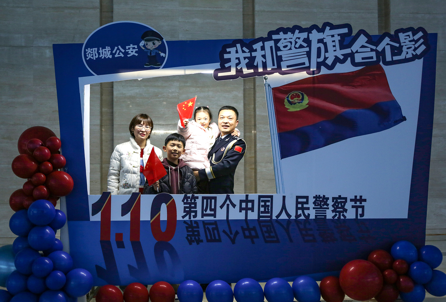 1月7日,山東省臨沂市郯城縣公安局開展我與警旗合影主題活動。