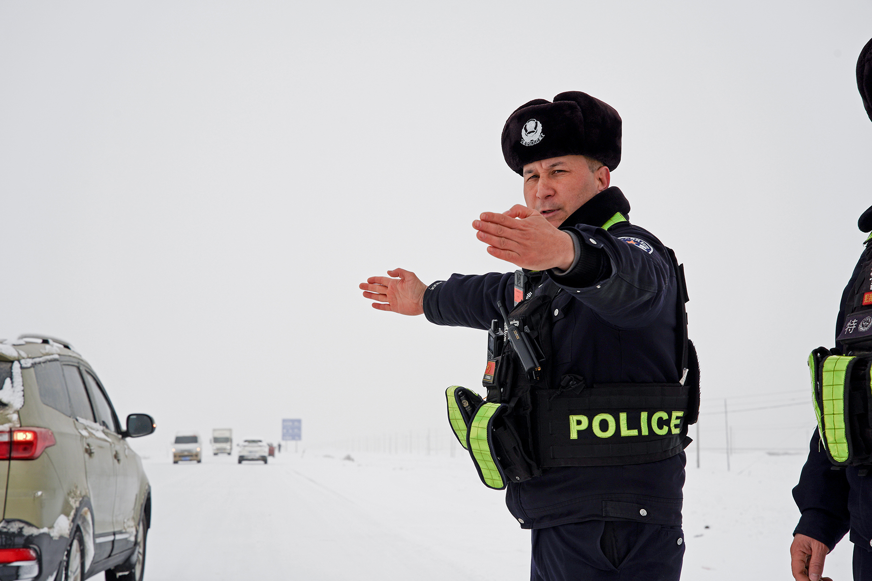 2月20日,新疆維吾爾自治區(qū)皮山縣境內(nèi)國(guó)道因大雪覆蓋通行受阻,皮山縣公安局組織警力對(duì)國(guó)道進(jìn)行巡查,保障車(chē)輛通行。